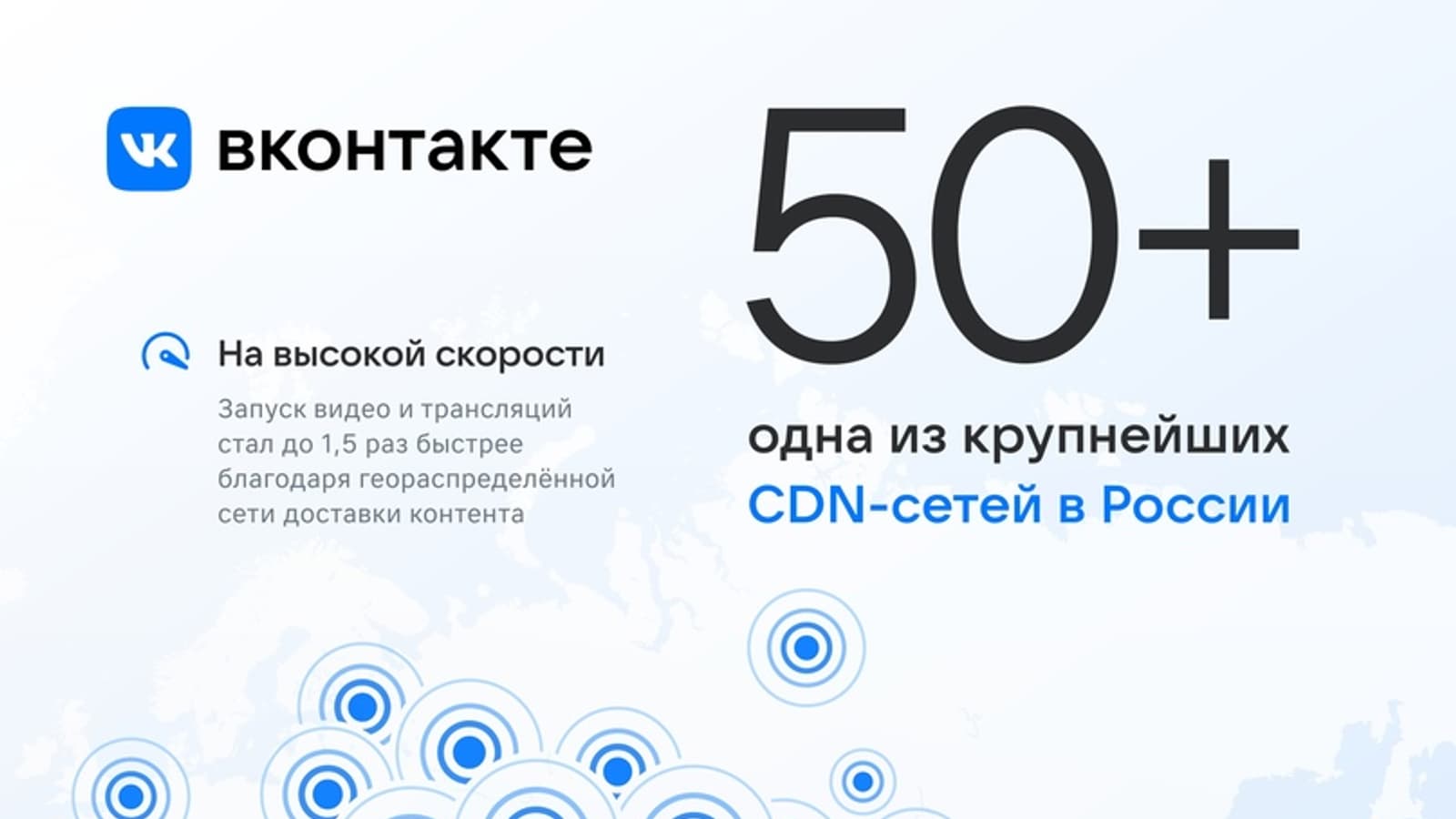 Как отмечает пресс-служба, сеть CDN «ВКонтакте» стала одной из крупнейших в России и включает в себя более 50 узлов. Теперь 97 миллионов пользователей соцсети по всему миру смогут получать контент на высокой скорости: видео и трансляции должны загружаться и запускаться до 1,5 раз быстрее в среднем вне зависимости от расстояний.