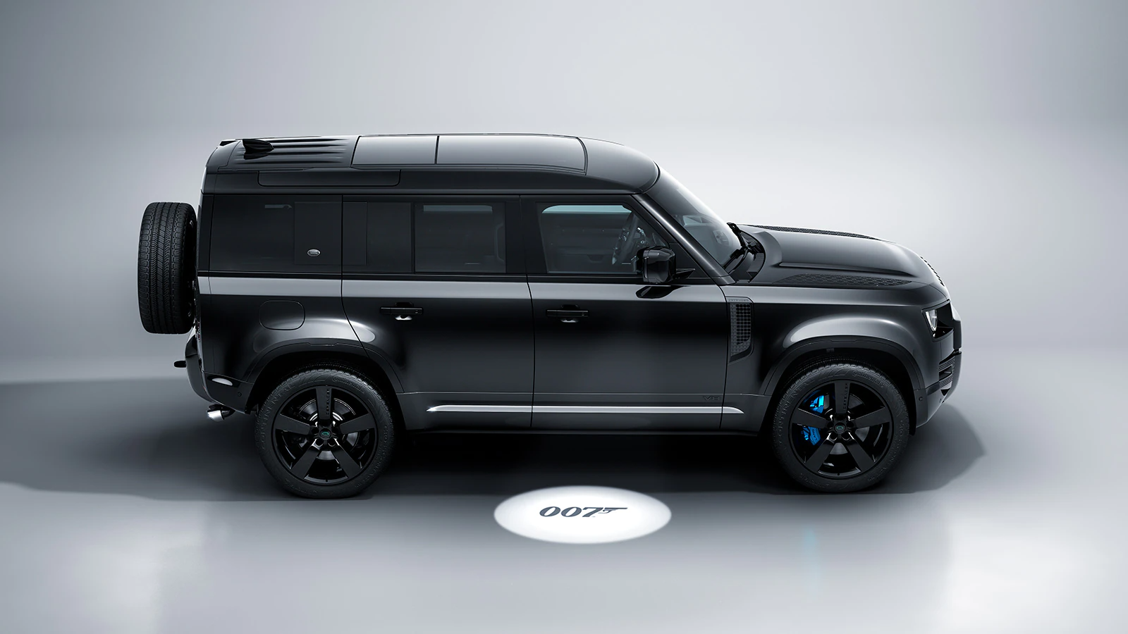Эксклюзивности Defender V8 Bond Edition придают такие особенности, как лазерная гравировка в отделке салона one of 300 (один из 300), проецирующийся на землю логотип 007 при отпирании двери, бейдж Defender 007 на двери багажного отделения, накладки на пороги Defender 007, 22-дюймовые колёсные диски Luna с чёрной глянцевой отделкой и передними тормозными суппортами цвета Xenon Blue. Кроме того, при активации мультимедийной системы Pivi Pro, водитель получает приветственное сообщение в стиле 007.