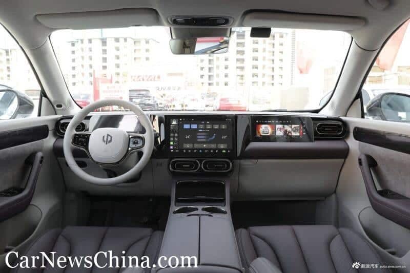 Внутри расположены сразу три экрана, включая приборную панель диагональю 10,25 дюйма. Главный сенсорный экран для информационно-развлекательной системы имеет диагональ 12,8 дюйма, а правый сенсорный экран, предназначенный для пассажира, является 10,25-дюймовым.