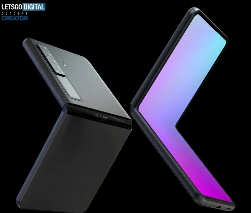 Точных данных о том, каким окажется Mate V, нет, но есть изображения из патентной заявки, поданной Huawei в европейское патентное ведомство в 2020 году. В ней как раз описывается такая модель. Патент описывает смартфон, схожий с нынешним Samsung Galaxy Z Flip3, хотя дизайн, конечно, иной. Предполагается, что диагональ внутреннего экрана составит 6,8 дюйма, наружного, визуально объединенного с камерой, – 1,35 дюйма.