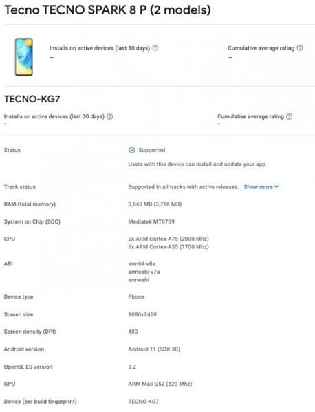 Когда состоится премьера Tecno Spark 8P, не сообщается, но, раз уж смартфон засветился в Google Play Console, официальный дебют должен состояться в ближайшие недели. Так как Spark 8P выступает улучшенной версией 130-долларового Spark 8 — новинка не будет дорогой.