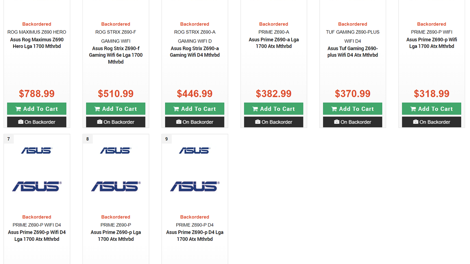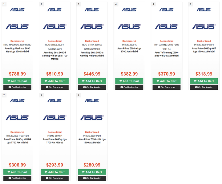| ROG STRIX-A WIFI | ROG STRIX Z690-A Gaming WiFi D | 354 | ROG STRIX Z590-A Gaming WiFi | 448 |