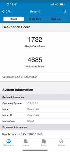 Производительность платформы Apple A15 Bionic настолько высока, что даже при отключении нескольких ядер она способна конкурировать с лучшими решениями на рынке.