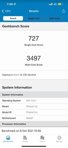IPhone 13 Pro в Geekbench 5 набирает более 1700 и 4600 баллов в однопоточном и многопоточном режимах соответственно. Это рекордные значения, намного превосходящие возможности флагманских SoC Qualcomm и Samsung. Но оказалось, что даже при активации на новом iPhone режима низкого энергопотребления результаты всё равно очень высоки: 727 и 3497 баллов соответственно!