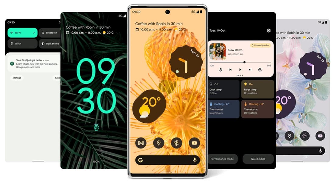 Pixel 6 получил экран AMOLED диагональю 6,4 дюйма с кадровой частотой 90 Гц, а в Pixel 6 Pro – экран диагональю 6,7 дюйма с кадровой частотой 120 Гц. Оба смартфона построены на собственной однокристальной системе Tensor, дополненной чипом безопасности Titan M2. Также в конфигурации смартфонов модули NFC и стереодинамики. Габариты Pixel 6 Pro – 163,9 x 75,8 x