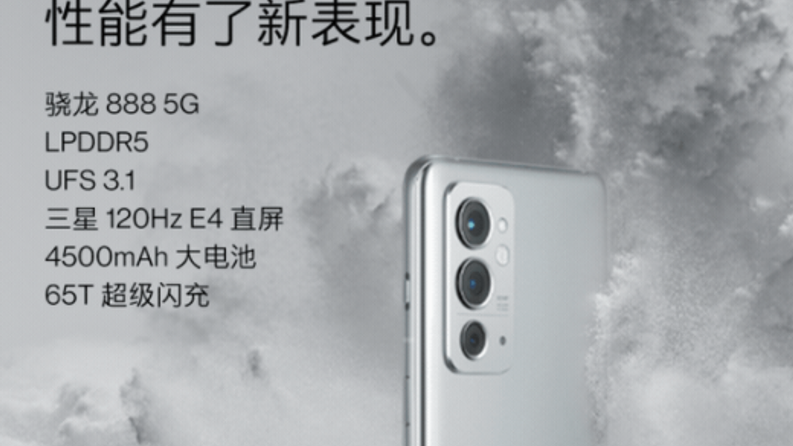 OnePlus 9RT построен на платформе Qualcomm Snapdragon 888, оснащен экраном Samsung AMOLED предпоследнего поколения E4 с кадровой частотой 120 Гц, аккумулятором емкостью 4500 мА·ч с поддержкой зарядки мощностью 65 Вт, памятью LPDDR5 и UFS 3.1.