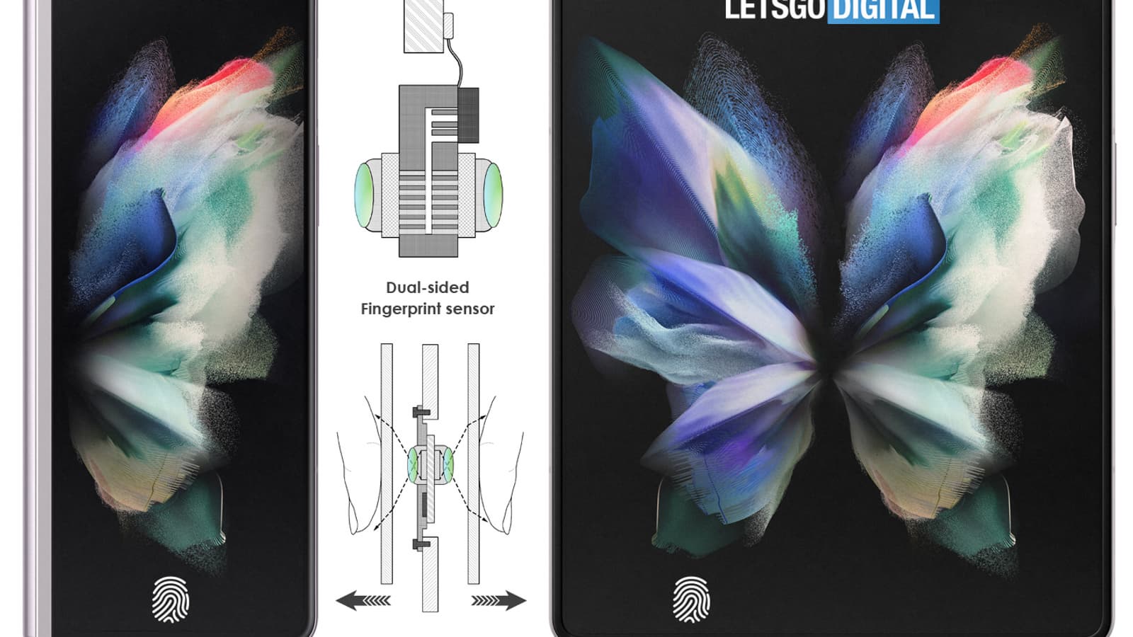 Патент под названием «Складное электронное устройство, способное обнаруживать отпечаток пальца хотя бы на части дисплея» был опубликован 7 октября 2021 года. Он описывает датчик отпечатков пальцев, расположенный таким образом, что его можно использовать как через внешний экран, так и через складной внутренний экран. Это стало возможным благодаря размещению датчика под левой нижней половиной гибкого экрана. Между датчиками размещается небольшая печатная плата, которая, в свою очередь, подключается к основной печатной плате. Это открывает новую возможность биометрической аутентификации как в разложенном, так и в сложенном положении.