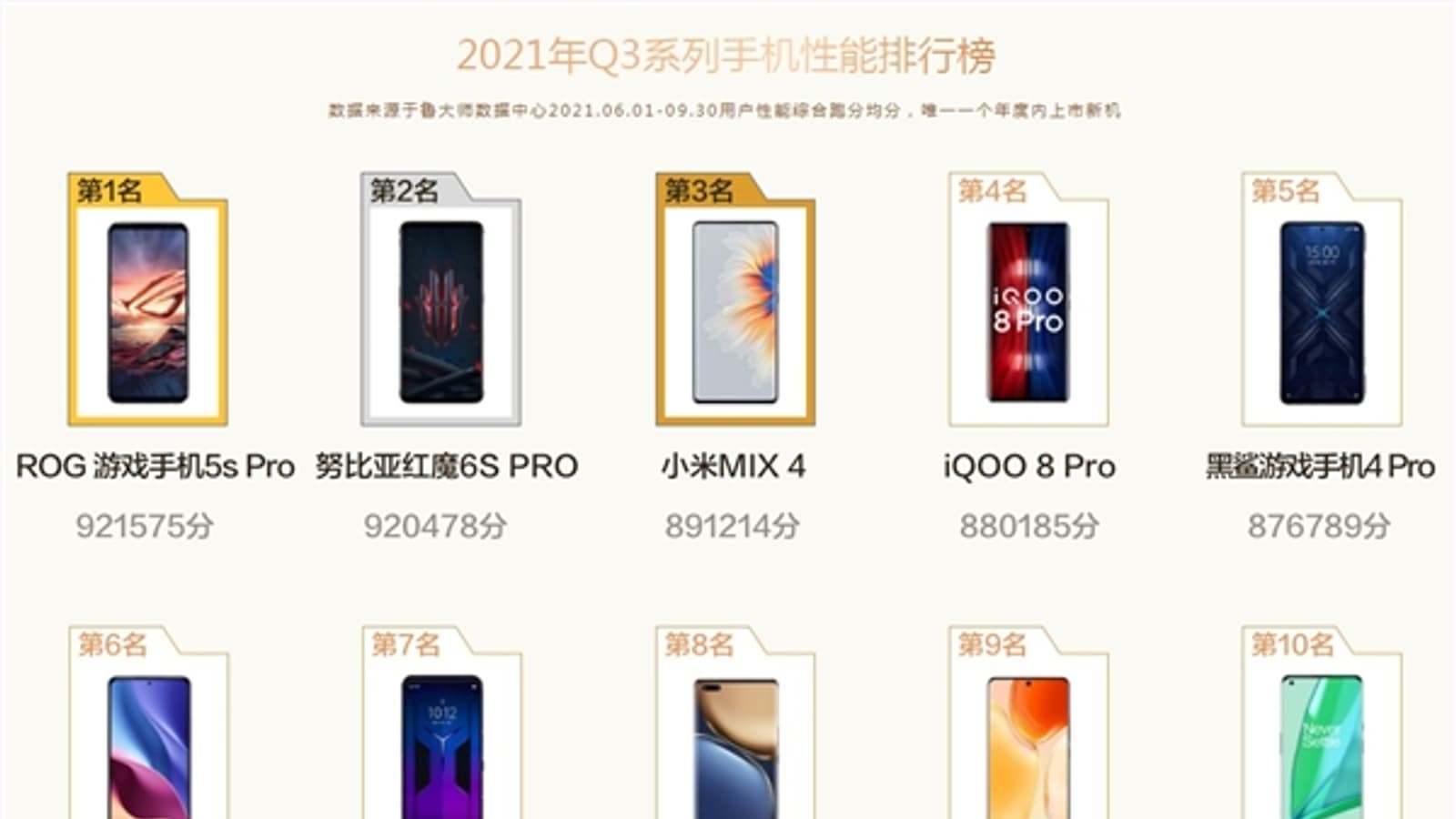 Разработчики бенчмарка Master Lu опубликовали рейтинг самых высокопроизводительных смартфонов третьего квартала текущего года. Его возглавил Asus ROG Phone 5s Pro с результатом 921 575 баллов. Второе место закрепил за собой Nubia Red Magic 6S Pro — у него 920 478 баллов. На третьем месте расположен Xiaomi Mix 4 — 891 214 баллов.