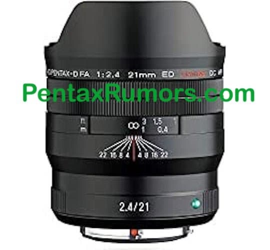 Источник опубликовал изображения объектива HD Pentax-D FA 21mmF2.4ED Limited DC WR. Этот объектив в течение некоторого времени можно было найти на японском сайте Amazon. Сейчас соответствующие страницы удалены. Цена новинки в Японии, если данные на страницах соответствовали действительности, примерно равна 1400 долларам. Анонс объектива HD Pentax-D FA 21mmF2.4ED Limited DC WR ожидается в ближайшие недели.