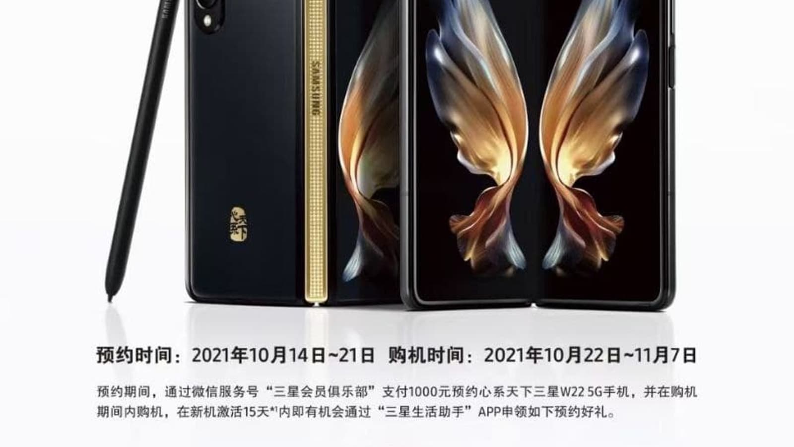 В W22 5G уже куда меньше золота, чем в прошлогоднем W21: сейчас в цвет благородного металла окрашены лишь петли, а в предыдущей модели — ещё и рамка и вся тыльная панель целиком. Рамка W22 5G серебристая, на петлях отчётливо виден логотип компании. Никаких аппаратных отличий W22 5G от Galaxy Z Fold3 не ожидается. В Китае, судя по тизеру, предзаказ стартует на следующий день после анонса — 14 октября. Ожидается, что стоимость устройства составит почти 3000 долларов.
