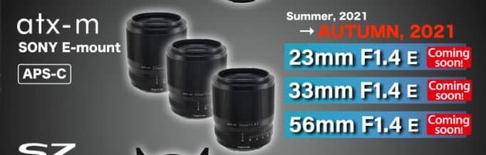 Как утверждает источник, неоднократно публиковавший впоследствии подтверждавшуюся информацию о грядущих новинках фототехники, объективы Tokina atx-m 23mm F1.4 E, 33mm F1.4 E и 56mm F1.4 E с креплением Sony E будут представлены 12 ноября.