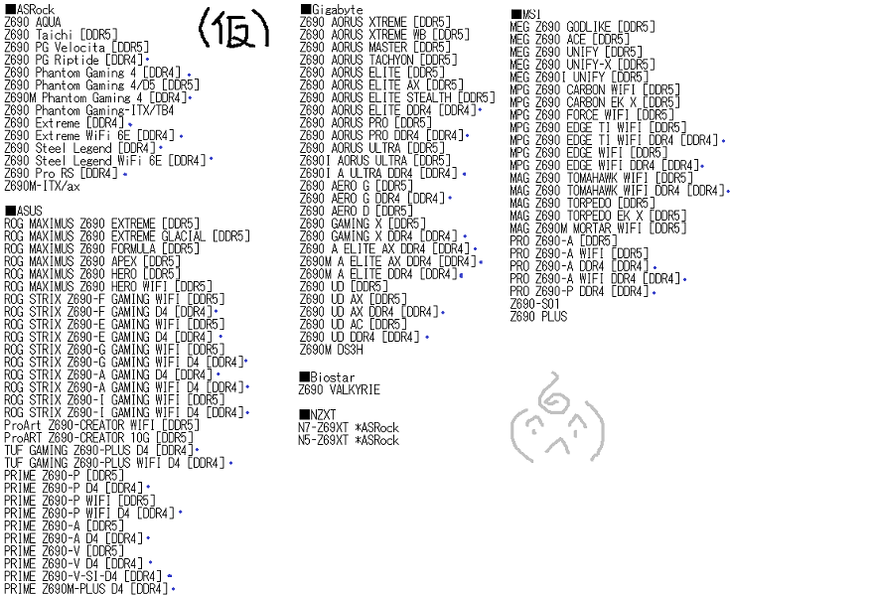 Официальная премьера процессоров Intel Alder Lake состоится 27 октября, а продажи стартуют 4 ноября. Одновременно с ними в продаже появятся топовые системные платы на чипсете Z690. И сейчас в Сети появился перечень (судя по всему, полный) разных моделей на Z690 от шести производителей.