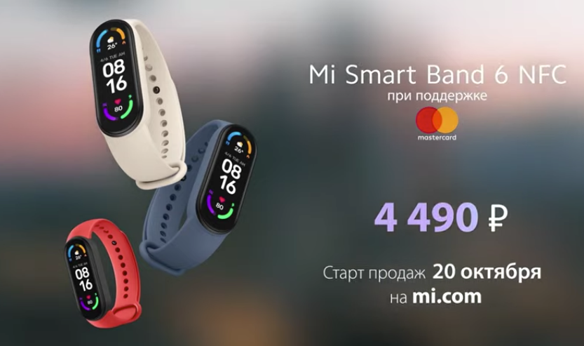 Российским пользователям Mi Smart Band 6 NFC уже доступен в официальном онлайн-магазине Xiaomi по рекомендованной розничной цене 4490 рублей. Также Mi Smart Band 6 NFC идёт в подарок при покупке смартфона Xiaomi 11T Pro. Для сравнения: обычная версия предлагается сейчас за 3990 рублей.