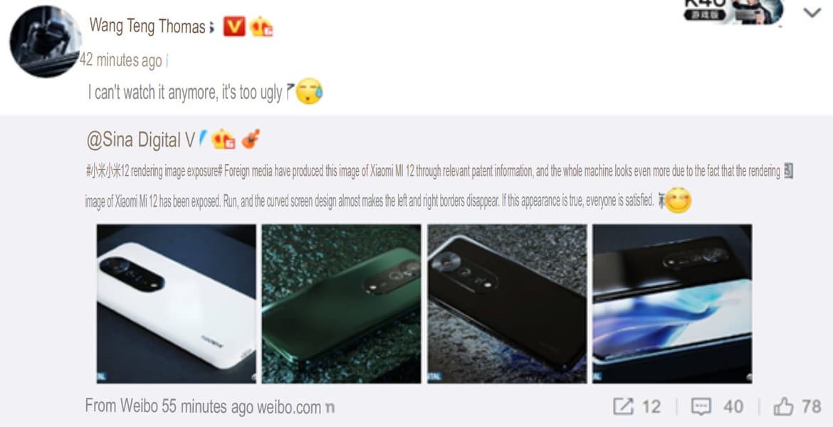 Ван Тен Томас (Wang Teng Thomas) — директор по новым продуктам Xiaomi и, вероятно, один из немногих, кто в курсе всех новых устройств компании. И вот, по его словам, на рендеры Xiaomi 12 Ultra «страшно смотреть». Получается, что дизайн Xiaomi 12 Ultra будет другим, а патент был оформлен или на перспективу, или вовсе — просто «чтобы был».