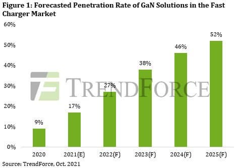 Apple недавно представила зарядное устройство MagSafe мощностью 140 Вт для нового MacBook Pro, что стало первым случаем, когда Apple использует в зарядном устройстве нитрид-галлиевые транзисторы (GaN). По мнению аналитиков TrendForce, это признак того, что устройства быстрой зарядки мощностью более 100 Вт вступили в период роста. Этому способствует снижение цен на силовые GaN-транзисторы, уже приблизившиеся к 1 доллару за штуку. В TrendForce ожидают, что доля моделей с такими транзисторами среди устройств быстрой зарядки в этом году составит 17%, что почти вдвое больше прошлогоднего показателя, а в 2025 году она превысит 50%.