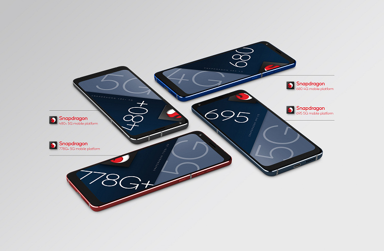 Итак, Qualcomm представила четыре новинки: Snapdragon 778G Plus 5G, Snapdragon 695 5G, Snapdragon 480 Plus 5G и Snapdragon 680 4G.