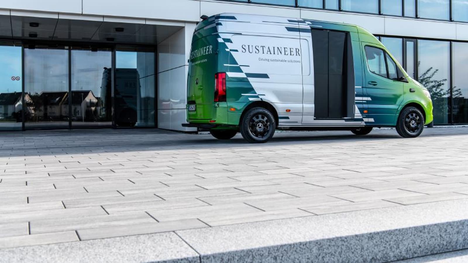 Компания Mercedes-Benz представила концептуальный автомобиль Sustaineer. Сама машина тут не особо интересна, так как это обычный электрический фургон eSprinter.