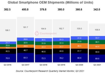 Минувший квартал был лучшим третьим кварталом в истории рынка смартфонов