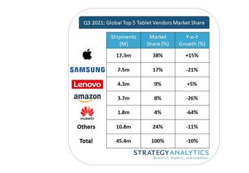 Рынок планшетов за год сократился на 10%