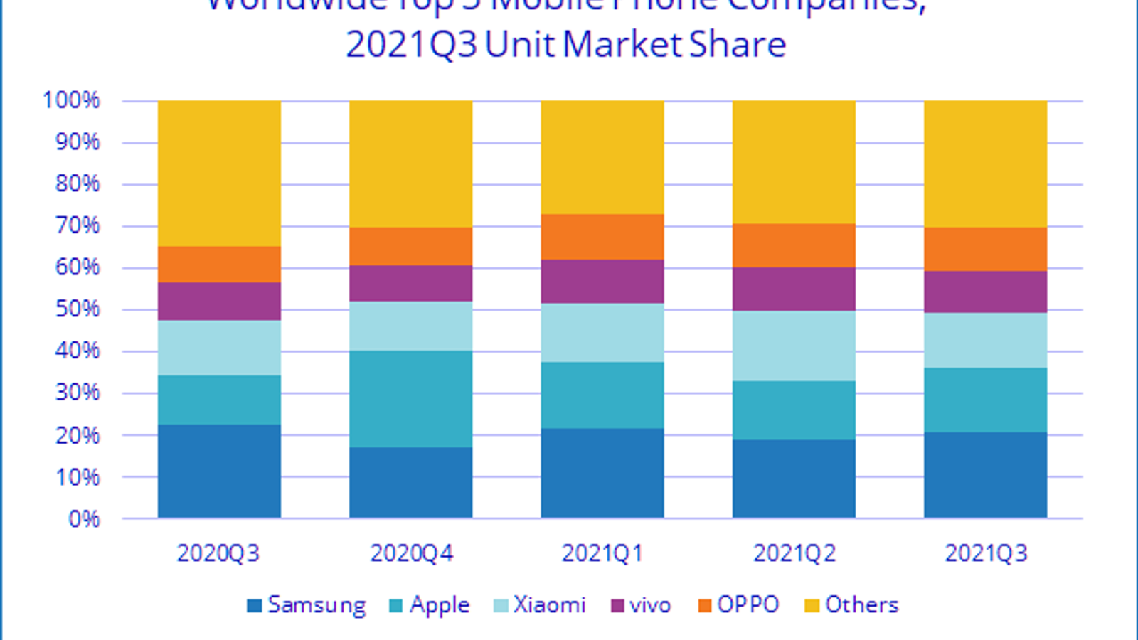 Лидером рынка остаётся компания Samsung. Однако южнокорейский производитель за год сократил поставки с 80,4 до 69,0 млн аппаратов, то есть на 14,2%. В результате его доля уменьшилась с 22,7% до 20,8%.