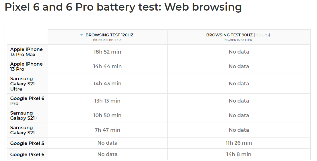 Что же касается работы в браузере, тут результаты у Pixel 6 и Pixel 6 Pro не рекордные, но очень хорошие. И в итоге можно сказать, что с автономностью у новинок всё очень неплохо.