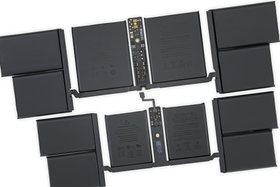 В целом между младшей и старшей моделями новых MacBook Pro с точки зрения конструкции разницы практически нет. Аккумуляторы имеют ёмкость 69,6 и 99,6 Вт•ч соответственно, и в обоих случаях это целая гирлянда из шести элементов.