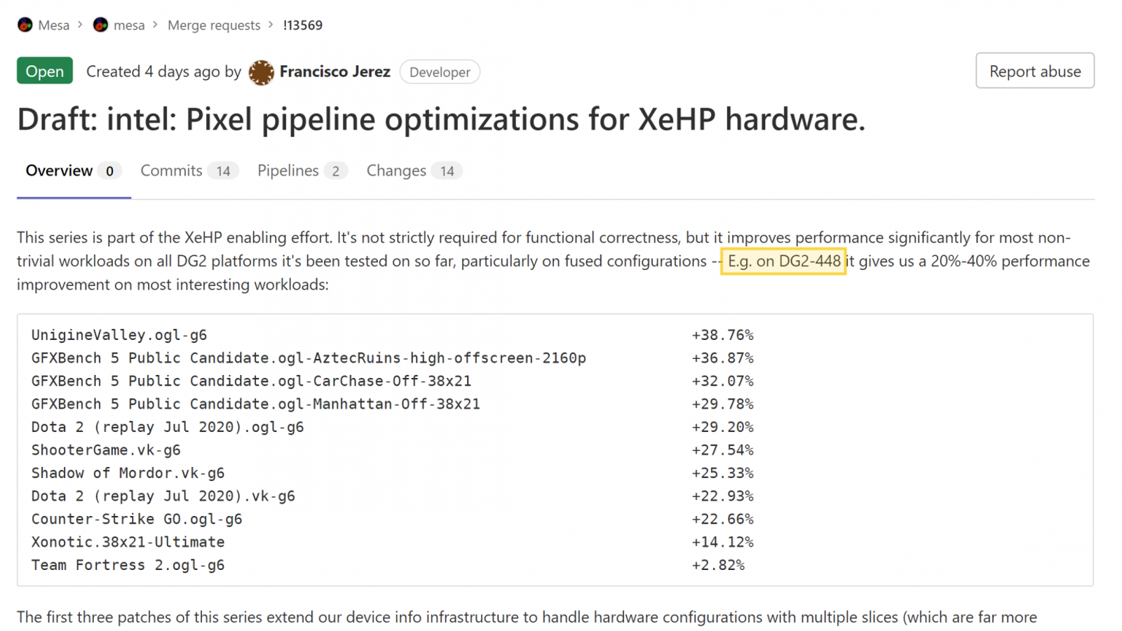 Слухи о том, что топовая видеокарта Intel Arc Alchemist будет конкурировать с Nvidia GeForce RTX 3070 и 3070 Ti, ходили давно, и вот сейчас появилось больше конкретики на этот счёт. По производительности с GeForce RTX 3070 Ti сравнится модель на топовом GPU DG2-512 (с 512 исполнительными блоками), а вот с обычной GeForce RTX 3070 будет конкурировать видеокарта на DG2-448. Такой графический процессор подтверждён самой Intel: он засветился в базе Mesa — драйвера с открытым исходным кодом для OpenGL и Vulkan.