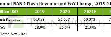 Ожидается, что в 2022 году продажи NAND вырастут на 7,4% и достигнут 74,9 млрд долларов