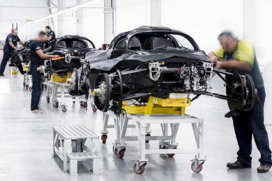 На фабрике есть специальная площадка, посвященная Valkyrie. Специалисты собирают всё вручную, на сборку одного гиперкара Valkyrie уходит 2000 часов. Каждый готовый автомобиль отправляют на трек Silverstone Raceway для тестирования.