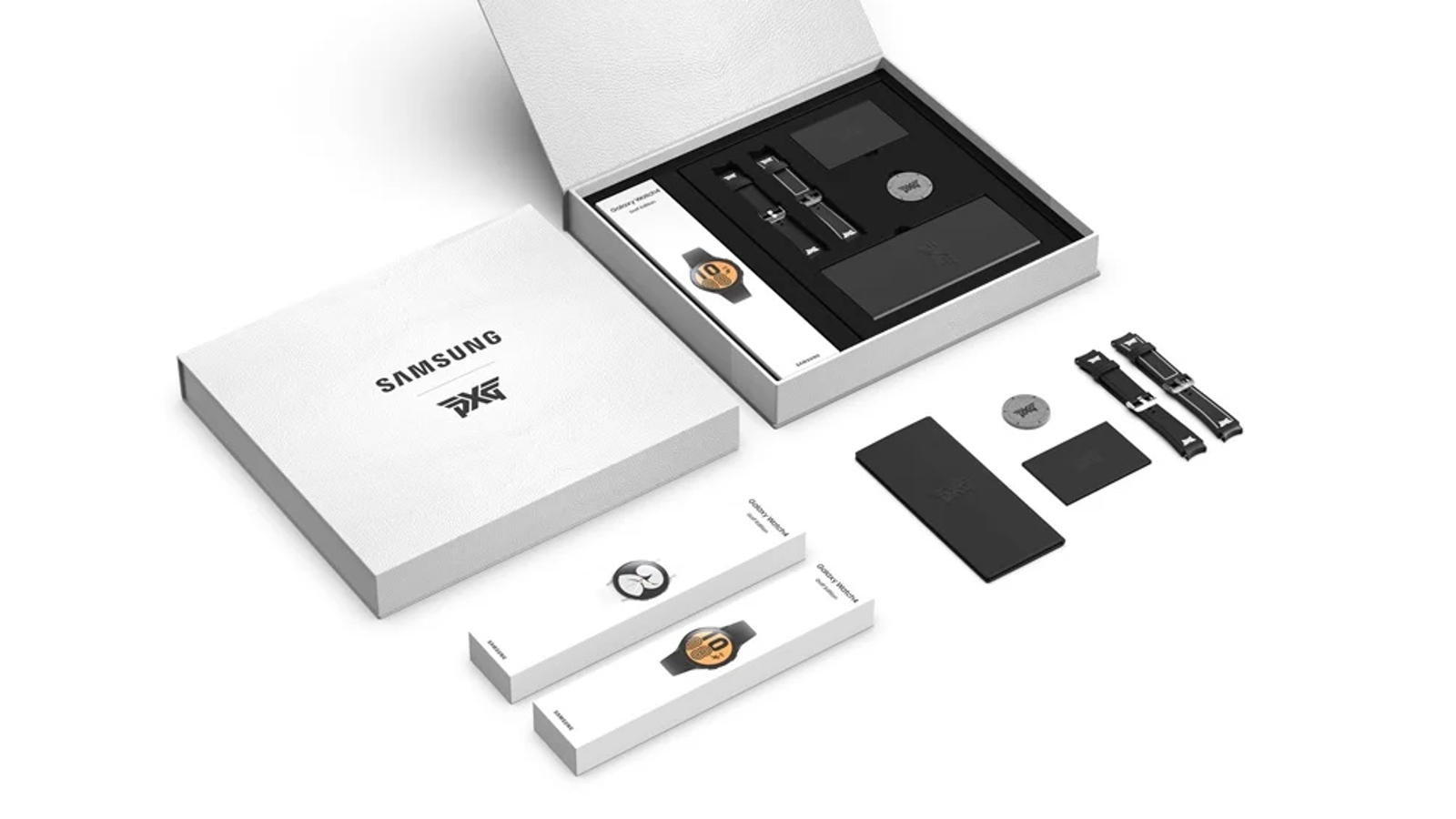 Кожаный кошелёк PXG изготовлен из 100% натуральной воловьей кожи и козьей кожи, пошедшей на подкладку. Маркер PXG изготовлен из нержавеющей стали и имеет логотип PXG. Пользователи могут заменить кожаный ремешок на силиконовый при желании. Умные часы поставляются с предустановленным приложением Smart Caddy, которое представляет функцию точного измерения расстояния, а также информацию более чем о 40 000 полях для гольфа.