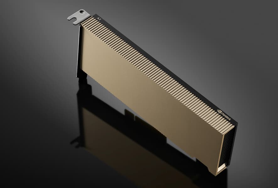 A2 Tensor Core получил 16 ГБ памяти GDDR6 с шиной разрядностью 128 бит. GPU работает на частоте 1440 МГц (базовая) и 1770 МГц (Boost), производительность в вычислениях с одинарной точностью составляет 4,5 TFLOPS. Значение TBP составляет 60 Вт, так что ускоритель обходится без дополнительного питания. К слову, система охлаждения полностью пассивная, а в условном ПК устройство занимает пространство всего лишь одного слота.