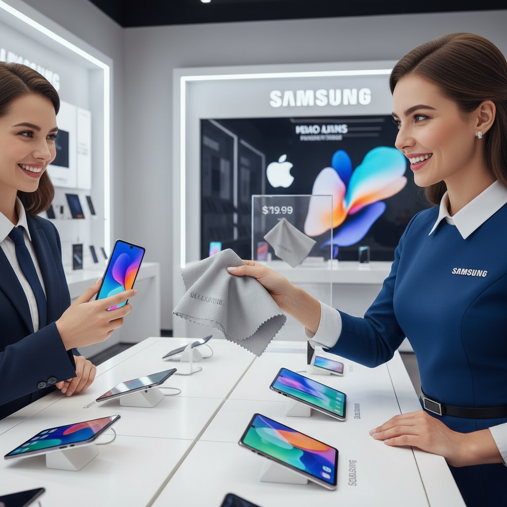 Samsung объявила о бесплатной раздаче салфеток владельцам устройств Galaxy. Информация была опубликована немецким представительством Samsung, заявившим, что пользователи могут подать заявку на бесплатное получение полировальной ткани.