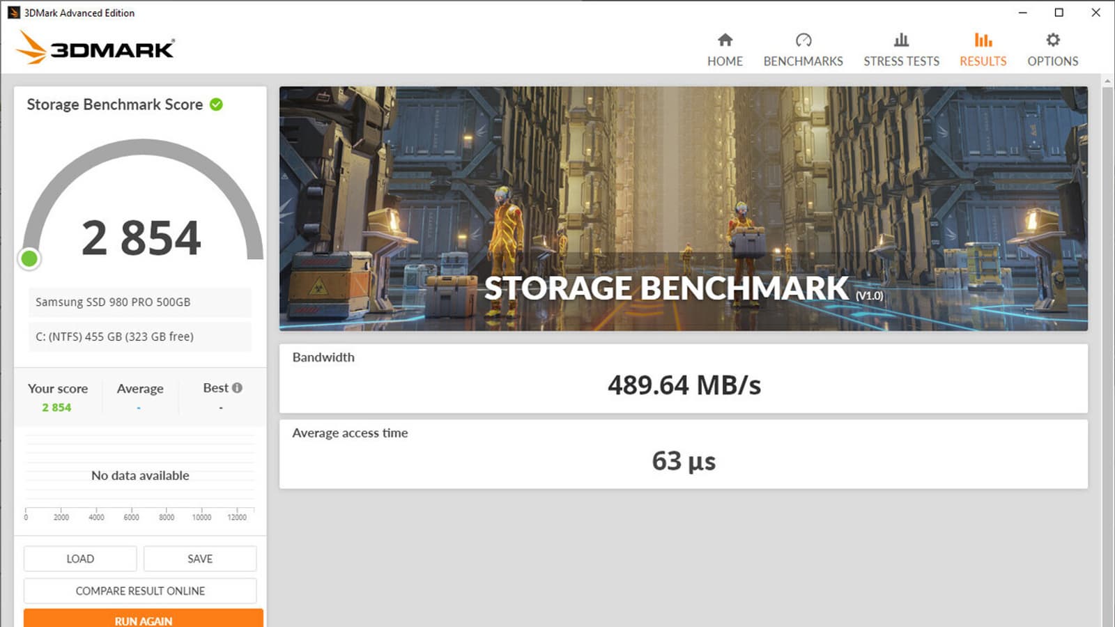 Тест 3DMark Storage Benchmark совместим со всеми современными устройствами хранения и может использоваться для тестирования как внутренних, так и внешних накопителей. Он даёт оценку производительности 3DMark Storage Benchmark Score. Чем выше балл, тем выше производительность. Для примера, накопитель Intel Optane SSD 900P объёмом 280 ГБ (PCIe 3, M.2) набирает в новом тесте 4241 балл, накопитель Samsung SSD 980 PRO объёмом 500 ГБ (PCIe 4, M.2) — 2854 балла, WD_BLACK SN750 NVMe объёмом 500 ГБ (PCIe 3, M.2) — 2014 баллов, а Samsung SSD 860 EVO объёмом 1 ТБ (SATA 5 Гбит/с) — 1193 балла. Тест также даёт показатели пропускной способности и среднего времени доступа.
