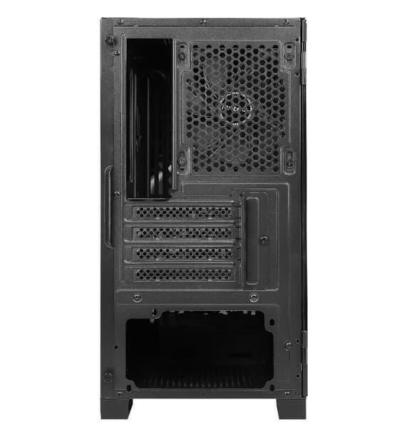 Корпус размерами 378 x 200 x 398 мм рассчитан на плату типоразмера mini-ITX или microATX. Кроме того, в нем есть место для четырех карт расширения и трех накопителей. Два из них размещаются в нижней части, а третий — на лотке для системной платы. Максимально допустимая длина карт расширения равна 275 мм, но если не ставить вентиляторы на передней стенке, она увеличивается до 300 мм. Кстати, блок питания может быть длиной до 175 мм, а если отказаться от корзины для накопителей, граница отодвигается до 300 мм. Высота процессорной системы охлаждения не может быть больше 150 мм.