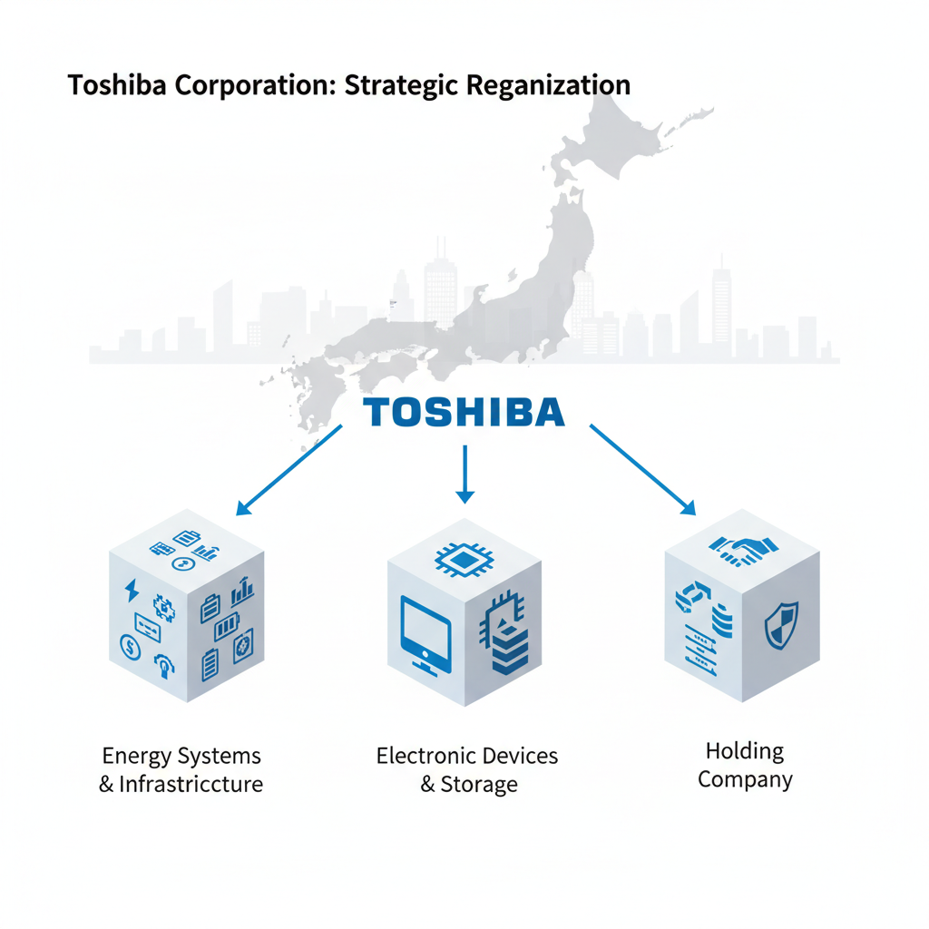 Подтверждая предварительную информацию, компания Toshiba сегодня объявила о намерении разделиться на три отдельные компании. Этот шаг призван повысить её ценность в глазах акционеров. Он стал кульминацией почти пяти месяцев работы стратегического комитета совета директоров Toshiba. В соответствующем пресс-релизе отмечено, что это первый случай, когда выбранная схема разделения применяется в такой крупной японской компании.