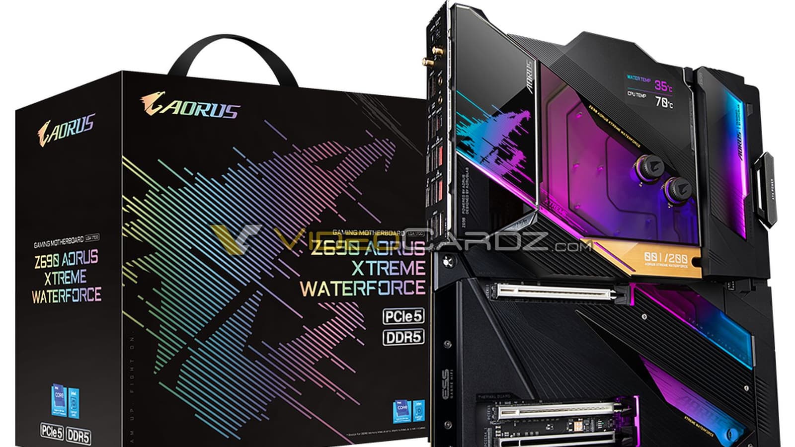 Источник опубликовал изображения системной платы Aorus Z690 Xtreme WaterForce, которую он называет самой высокопроизводительной платой для процессоров в исполнении LGA1700, разработанной Gigabyte.