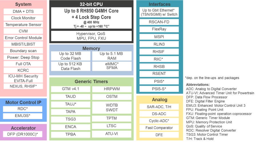 Разработанные для зональных и доменных приложений, новые микроконтроллеры основаны на ключевых функциях серии Renesas RH850/E2x для трансмиссии и серии RH850/C1M-Ax для управления двигателем электромобилей Кроме того, они отличаются повышенной производительностью и безопасностью. Как утверждается, это позволяет интегрировать несколько функций в один ECU, соблюдая строгие автомобильные требования безопасности, защиты и работы в реальном времени.