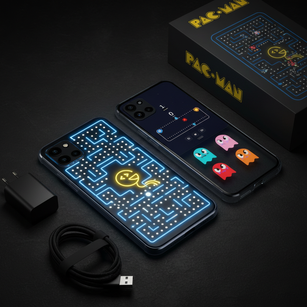 На устройстве используются тематические анимированные обои, анимация зарядки в стиле Pac-Man, переработанные значки приложений, звуки уведомлений в стиле ретро. Ещё имеется предустановленная бесплатная игра Pac-Man 256 2015 года.