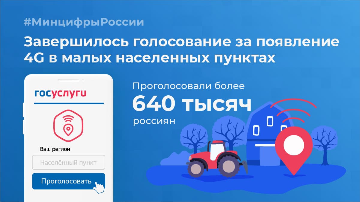 Министерство цифрового развития, связи и массовых коммуникаций Российской Федерации (Минцифры России) объявило о завершении голосования за появление 4G в малых населённых пунктах, которые первыми подключат к мобильному высокоскоростному интернету в следующем году.