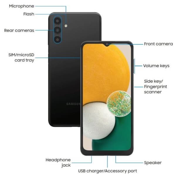 Samsung Galaxy A13 построен на однокристальной системе MediaTek Dimensity 700 и имеет в топовой конфигурации 8 ГБ ОЗУ и 128 ГБ флеш-памяти. Также обещаны варианты с 4 и 6 ГБ ОЗУ и 64 ГБ флеш-памяти. Экран IPS характеризуется диагональю 6,48 дюйма и разрешением Full HD+. Разрешение датчика фронтальной камеры, размещённой в каплевидном вырезе, составляет 8 Мп, разрешение главного датчика основной камеры — 50 Мп.
