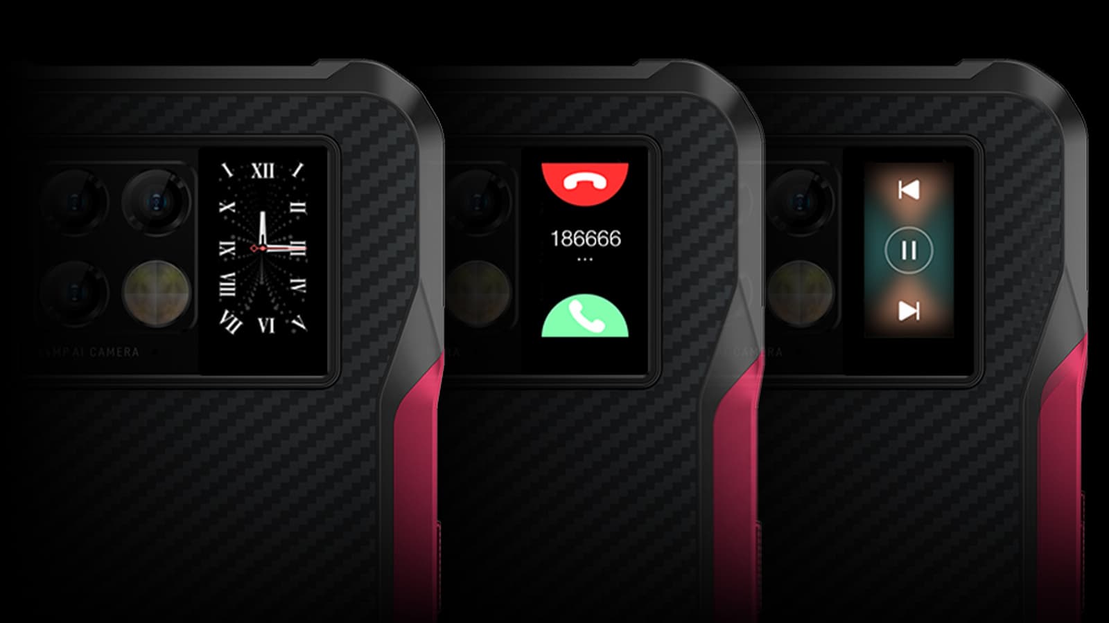 И действительно, судя по всему, Doogee V20 — это первый защищённый смартфон с дополнительным экраном на задней панели. На этот экран, как и у Xiaomi Mi 11 Ultra, можно не только выводить разную вспомогательную информацию. Помимо банального отображения часов, с помощью такого экранчика можно принимать и отклонять звонки, управлять воспроизведением музыки, и так далее.