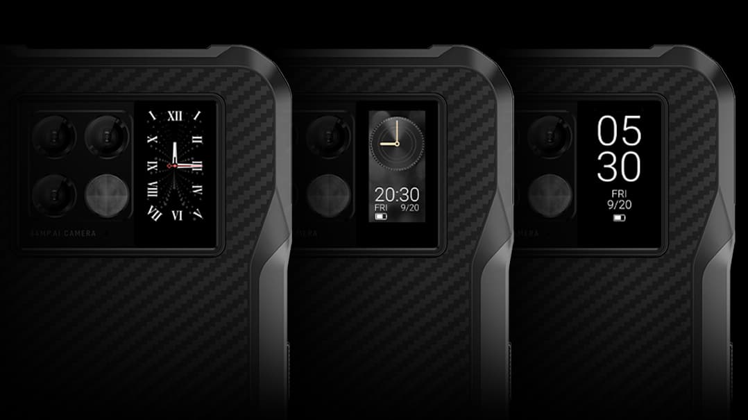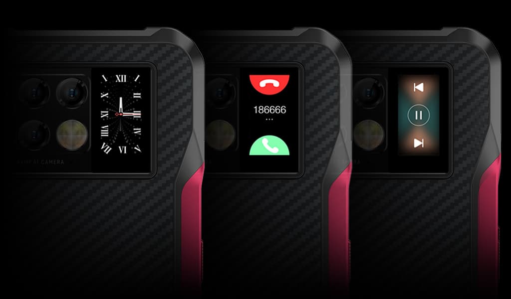 И действительно, судя по всему, Doogee V20 — это первый защищённый смартфон с дополнительным экраном на задней панели. На этот экран, как и у Xiaomi Mi 11 Ultra, можно не только выводить разную вспомогательную информацию. Помимо банального отображения часов, с помощью такого экранчика можно принимать и отклонять звонки, управлять воспроизведением музыки, и так далее.