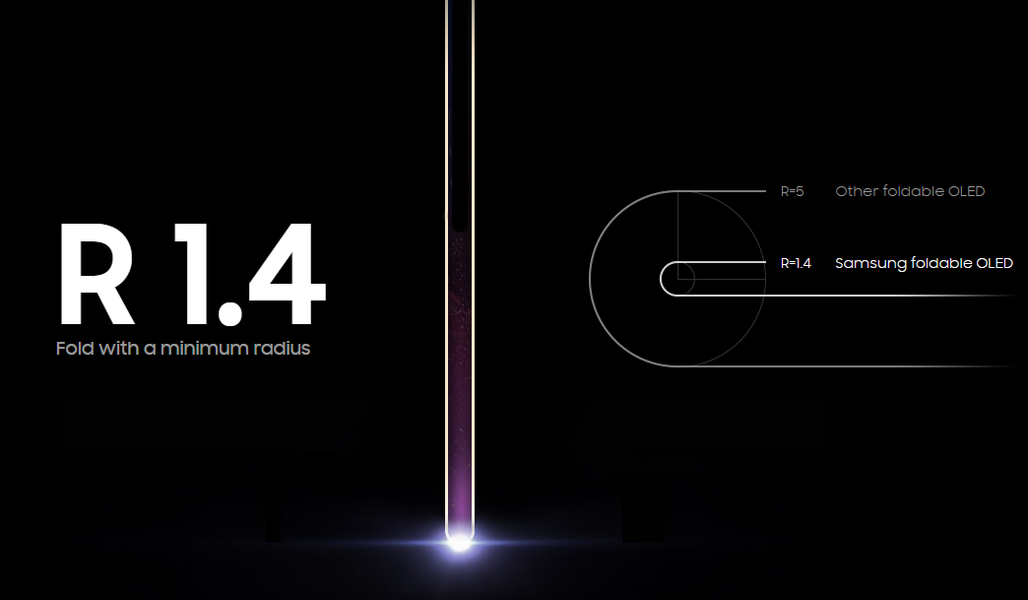 Что касается кривизны экрана, то радиус складывания составляет всего 1,4 мм.