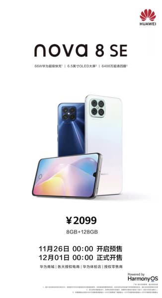 Компания Huawei сегодня официально представила в Китае смартфон nova 8 SE 4G. Новинка поступит в продажу 1 января по цене 330 долларов за единственную конфигурацию с 8 ГБ ОЗУ и 128 ГБ флеш-памяти. В целом, характеристики смартфона соответствуют ценовому сегменту, за исключением одного — платформы.