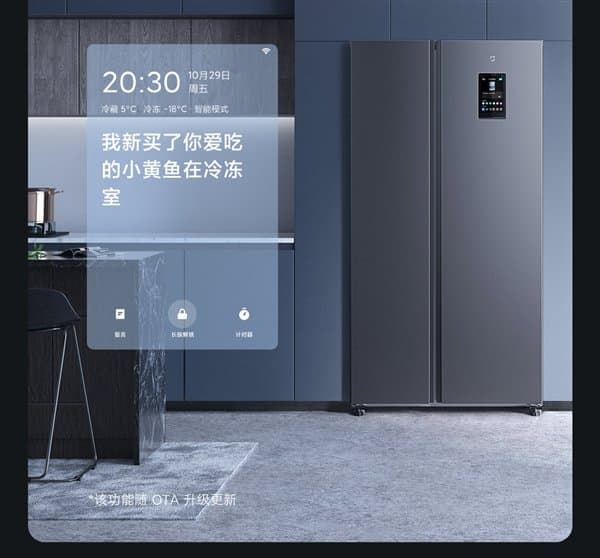 Холодильник оснащён четырьмя температурными датчиками и отвечает требованиям первого класса энергоэффективности бытовых приборов. На двери установлен 8-дюймовый сенсорный экран, который автоматически выходит из спящего режима в присутствии на кухне человека. Система поддерживает удалённое управление через приложение Mijia и обновление прошивки по воздуху. Предусмотрен и фирменный голосовой помощник Xiao AI.