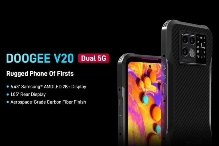 Первый защищённый смартфон с дополнительным экраном сзади — Doogee V20 — как рассказала компания, получит ещё и экран высокого разрешения.