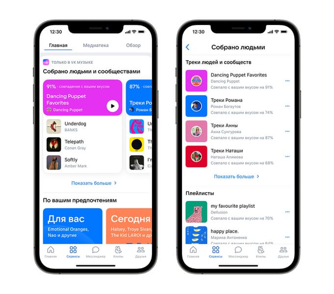 В VK Музыка появились рекомендации от людей. Сейчас в базе VK Музыки более 100 млн уникальных плейлистов, созданных людьми и сообществами. В ближайшее время планируется запуск алгоритма, который будет подбирать плейлисты на основе совпадения вкусов. Такая технология уже используется в алгоритмических плейлистах VK Музыки.