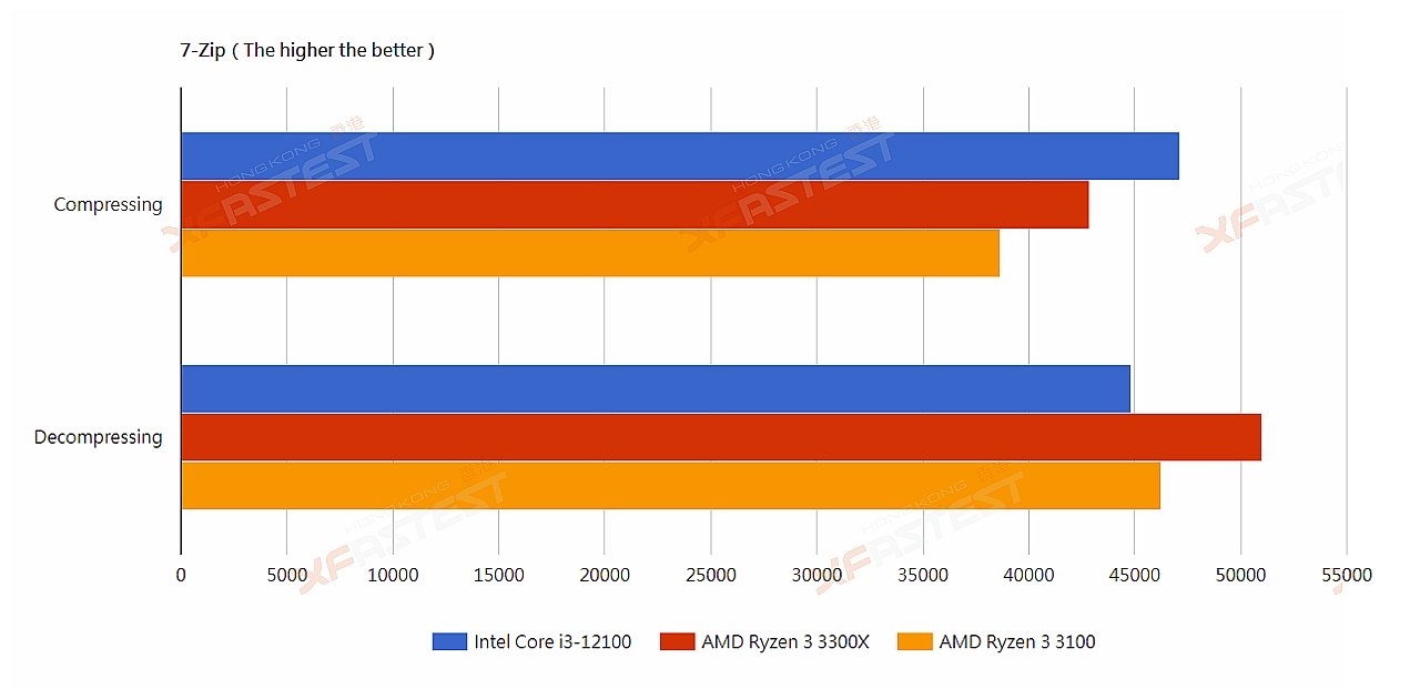 Китайский ресурс Xfastest опубликовал обзор не представленного пока официально одного из самых недорогих представителей семейства Alder Lake — Core i3-12100. CPU с четырьмя ядрами Golden Cove свели в тестах с процессорами AMD Ryzen 3 3100 и Ryzen 3 3300X. По слухам, стоимость Core i3-12100 не превысит 150 долларов, в то время как Ryzen 3 3300X на волне нехватки CPU сейчас в США стоит более 300 долларов! В тестах Xfastest Core i3-12100 в среднем оказался на 20–25% быстрее Ryzen 3 3300X и примерно на 30% быстрее Ryzen 3 3100.