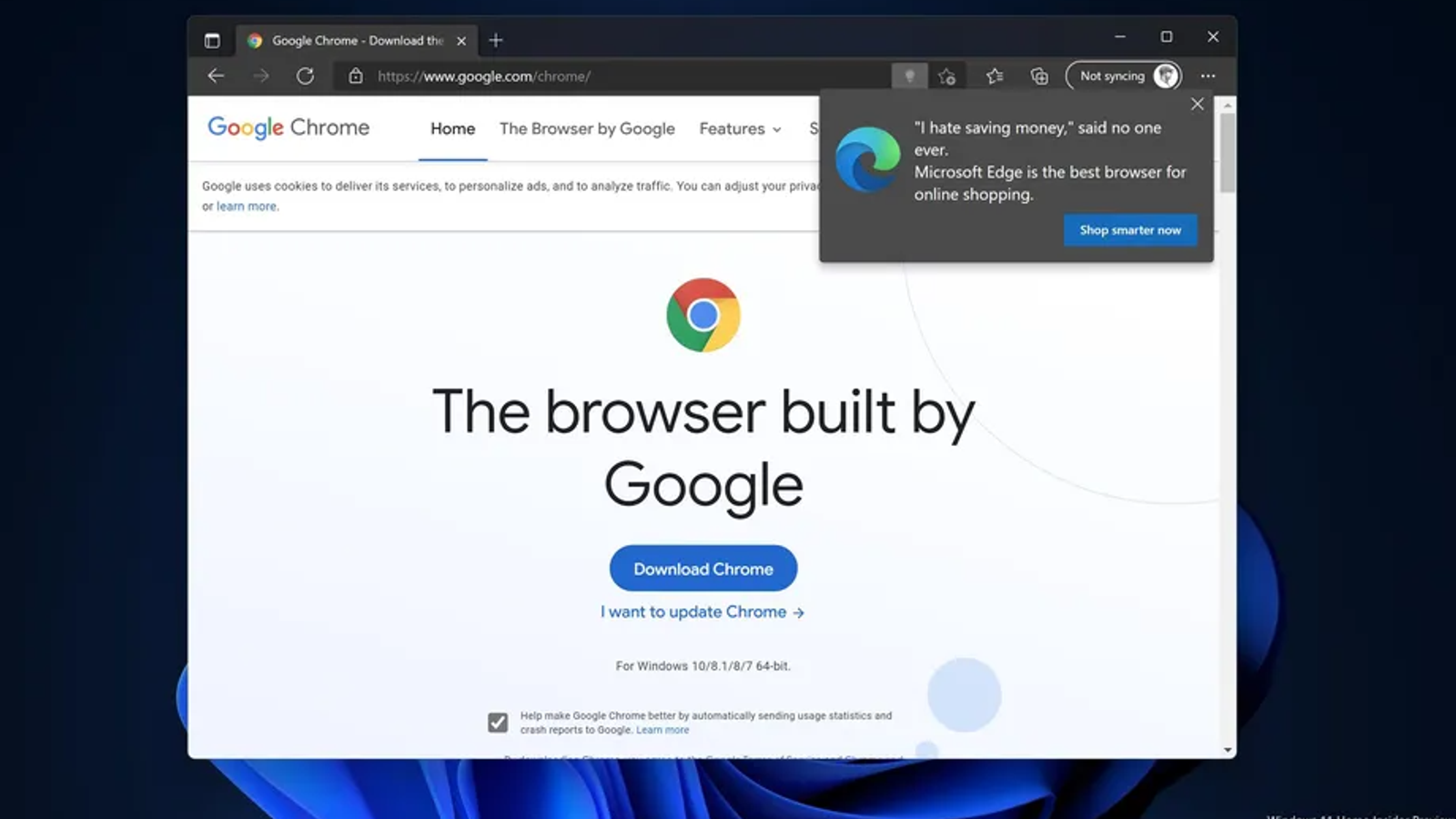 Это далеко не первая такая попытка. Microsoft начала тестировать «предупреждения» для пользователей, пытающихся установить Chrome или Firefox, ещё в 2018 году, но затем отказалась от них. Также Microsoft осложняет работу со сторонними браузерами в Windows. Например, в начале ноября Windows 11 перестала позволять открывать ссылки, связанные системой с Microsoft Edge, в сторонних браузерах.