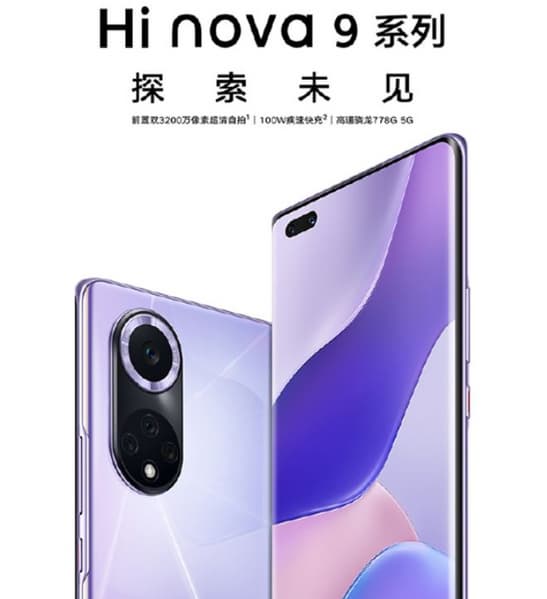 Hi nova 9 получил экран OLED диагональю 6,57 дюйма, разрешением Full HD+ с кадровой частотой 120 Гц, 32-мегапиксельную фронтальную камеру, основную камеру с датчиками разрешением 50, 8, 2 и 2 Мп, аккумулятор ёмкостью 4300 мА·ч с поддержкой быстрой зарядки мощностью 66 Вт, NFC. Цены такие: 8/128 ГБ — 470 долларов, 8/256 ГБ — 535 долларов.
